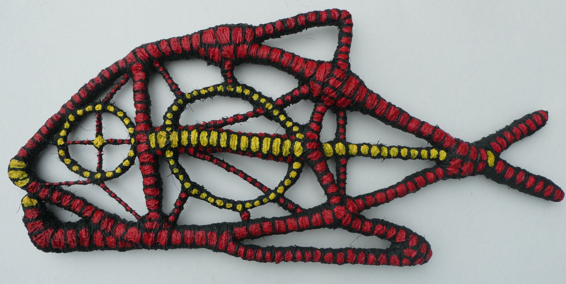 Fliegender Fisch, 2021, Weidenkätzchen-Zweige, gebunden mit Jute-Faden,
